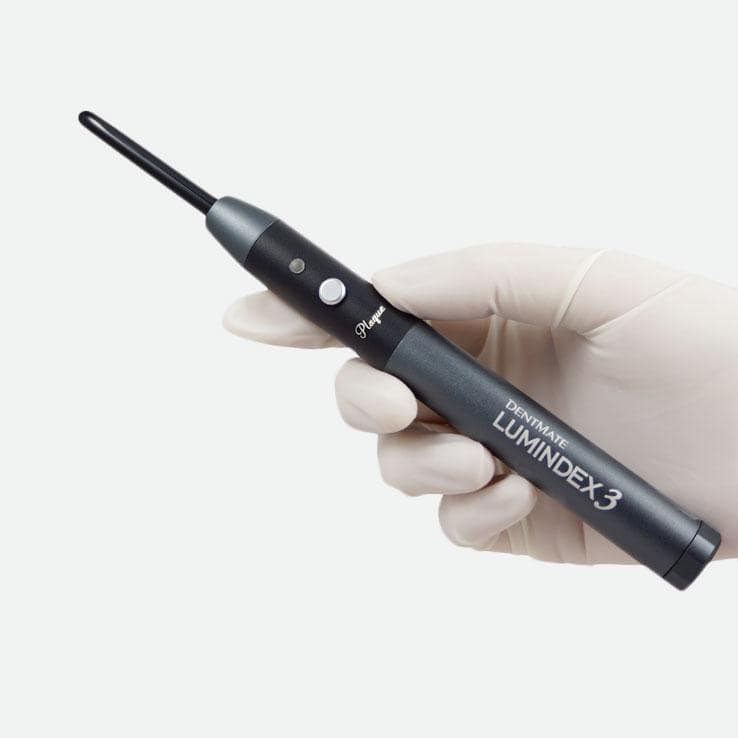 Dentmate Lumindex™ 3 Plaque -valolaitteella näet plakin ja karieksen helposti yhdellä napsautuksella. Kirkas violetti LED-valo tuo kariesalueen selvästi näkyviin, helpottaen tarkan työn suorittamista.